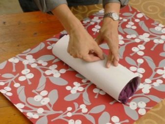 Next, we proceed to wrapping the gift in special paper. To do this, take a specific sheet that matches the size of the presentation. Do not save paper, otherwise the shape of the gift will lose its appearance. Carefully collect all its ends and turn towards the center. After that, we fix them with tape and decorate the docking place with a large paper bow.