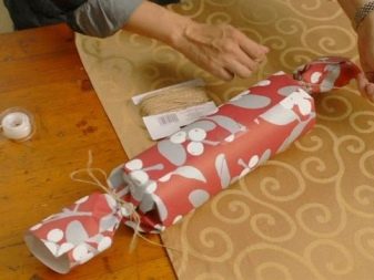 It will be beneficial to look at a plaid if you roll it into a small but dense roller and fasten it with a colored ribbon. But the packaging in the form of a huge candy will make your present unforgettable. How to arrange it all? Imagine that your blanket, rolled up by a roller, is a huge sweet bar (candy from childhood), and wrapping paper is a candy wrapper from a bar. We cut out paper of the appropriate size, put our blanket-candy there and form a big candy.