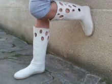 - Some wash white boots in the washing machine, but you must definitely choose a delicate washing mode. In addition, for washing, you need to use a fabric shoe cover. When washing boots in the machine, it is advisable to add a softening conditioner. It is better to squeeze out felt boots manually to avoid possible deformation of shoes.