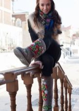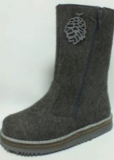 Designers use a variety of decorative elements to decorate boots. Some models are supplemented with large staves, others with appliqués and embroidery. All models have a leather toe cap to provide added protection against water entering the felt.