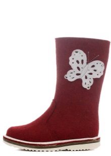 Valenoks for children are usually made in natural shades - gray, beige, brown or black. Typically, these tones are more suitable for boys, but the color scheme does not end there. Some models are made in red or burgundy. Girls like bright felt boots with colorful decors in the form of butterflies or snowflakes.