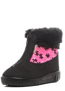 Valenoks are convenient for little mods by the fact that you do not need to suffer for a long time with laces or zippers - their shoes require minimal effort. And the snow-protective cuffs are easily pulled by the wings.