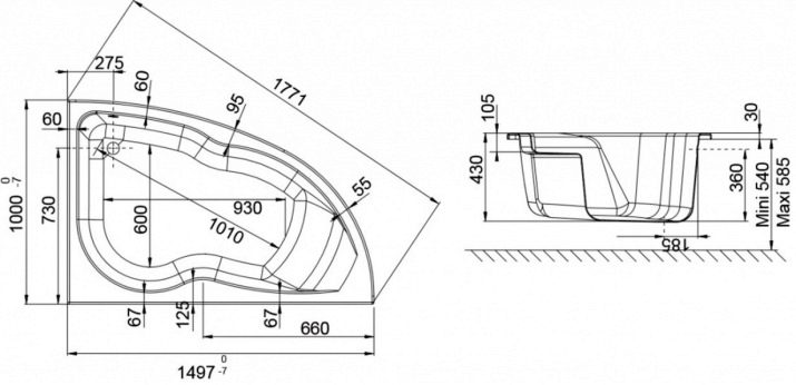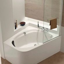 Corner options can be very small (up to 135 cm long and 100 cm wide) or standard - up to 170 cm long. The choice depends on the size of the bathroom - in a small room, even a small angular model may look too bulky.