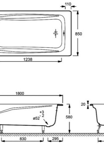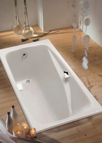 - Universal standard rectangular bathtubs. They may have pointed or rounded edges, a protrusion for the head and a special bend for the back.