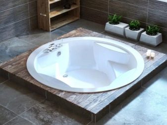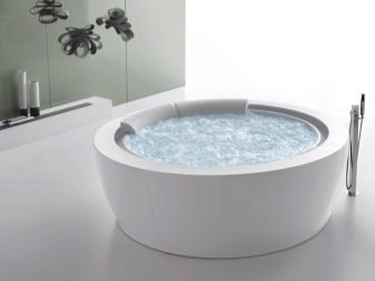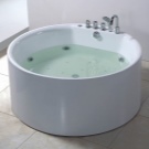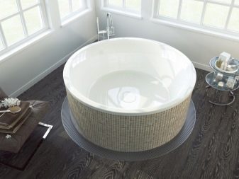 The smallest round bathtubs are considered to be 120x120 cm models. On the modern market, products with a diameter of 150 cm are especially popular. If the diameter of the container is 180 cm, then a person will easily fit in a lying position, and if you want to take water procedures at the same time, two can at once. 180x180 models are not recommended for installation in apartment buildings, as they are full-fledged mini-pools.