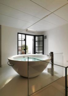 - The aesthetic component also plays a significant role.. If you want to update the room, but there is no desire to make repairs, you can just buy a round bathtub, which will give the room a luxury.