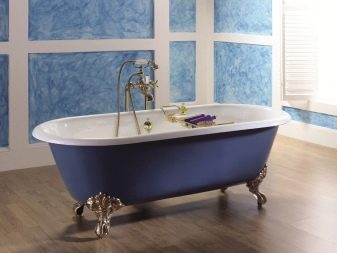 - Cast iron. Cast-iron bathtubs are considered a classic option that has not lost its relevance for over 50 years. These are incredibly durable models that can withstand almost any load. Cast iron fonts with legs look extremely harmonious and usually become the complement of classic style bathrooms.