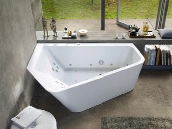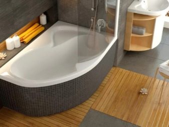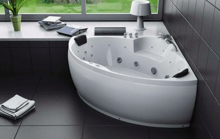 Modern corner baths feature not only high practicality, but also attractive, not boring to all design. This plumbing attracts attention with its non-standard, more expensive appearance. Correctly sized bathroom model can become its true decoration.