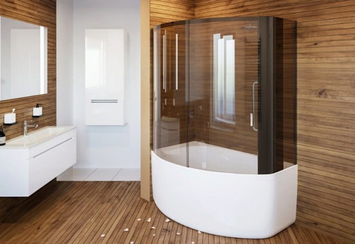 - Nowadays, at the peak of popularity are showers equipped with a variety of options and functions.. The same functional load is assumed by modern corner bathtubs. In the shops you can find beautiful models equipped with hydromassage, built-in shelves, an audio system and even lighting of different colors. Of course, such items are of high cost, but usually consumers do not regret that they bought such an item.