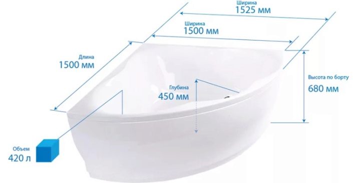 Angle bathtubs manufactured today are available in various sizes. They are both large and massive, and medium or small. Choosing the perfect option for your home, Be sure to take into account the quadrature of the bathroom in which you will install the bowl.