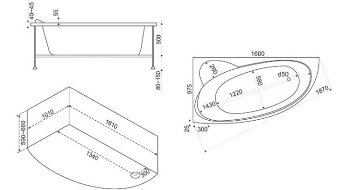 - The corner bathtub is ergonomic. It not only does not take extra square meters, but also does not block access to other objects in the room, does not make it cramped, does not burden the interior.