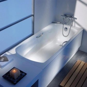 These products are characterized by excellent operational properties: they are practical and durable, do not create unpleasant noise during use. At the same time, such bathtubs are quite massive, each weighing about 150 kg - this creates certain difficulties in the transportation and installation of the structure. Besides, cast iron bathtubs are available only in a rectangular version with a small size range.