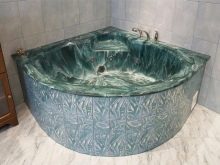 - Artificial stone baths - far from a budget option. They differ in durability and wear resistance. A huge plus of these products is an unforgettable design and color solutions.