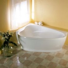 Corner baths can be symmetrical and asymmetric, it all depends on your preference or the size of the bathroom. Their differences are in the connection. Angular designs vary in depth and shape of the bowl, and, of course, in size. Typically, corner models produce from 120 to 185 cm.