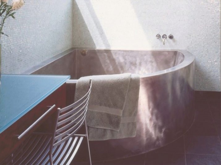 - One of the most common is stainless steel - inexpensive, but very durable material. Such bathtubs are wear-resistant, they can be operated with proper care for about 20 years. Models heat well and hold heat for a long time.