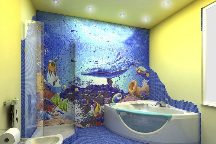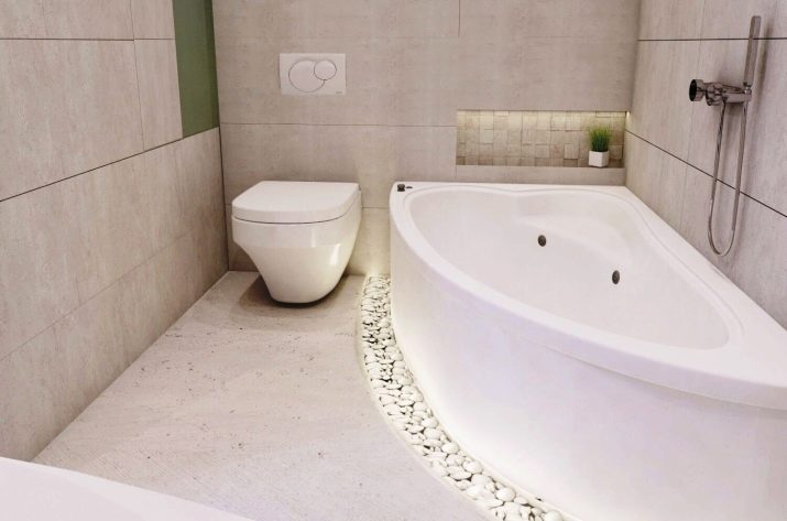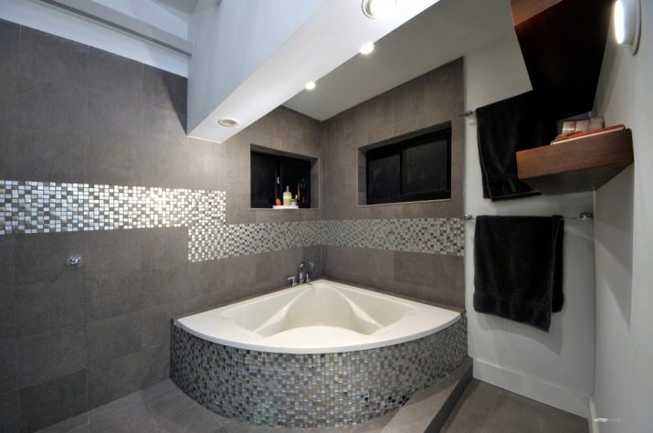 The corner bath in a small room will not only solve the problem of space, but also create an unforgettable effect.
