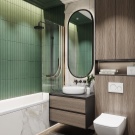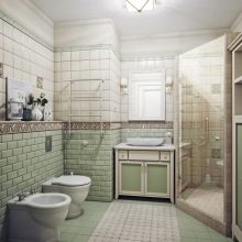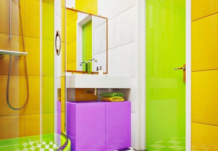 If you decide to decorate the interior in bright colors, you need to do this correctly. For example, the color should be selected based on those shades in which the home is decorated. If, say, it is decorated in green tones, it is logical that the bath will be aged in them. However, you can build on not only the primary color, but also the auxiliary.