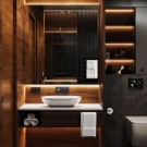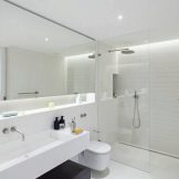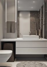 Minimalism is embodied simply: each element of arrangement is maintained in the maximum simplicity. Excessive embellishment is excluded, emphasis is placed on the functionality and simplicity of design. Even the fittings (faucets, faucets), heated towel rails, shelves are selected as simple as possible, maintaining the unity of design and form.