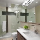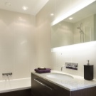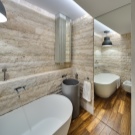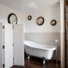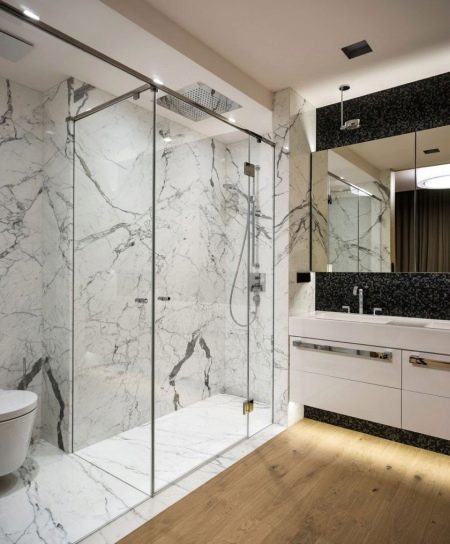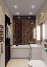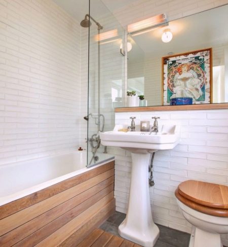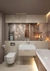 You need to divide the space into 3 zones: a washing place, a sink with a mirror, a toilet. Sometimes, in order to save space, the bathtub is replaced with a shower cabin. Due to this, it is possible to create a visual space in the room, visually erase the rigid borders of the room, add an atmosphere of comfort. The bathroom can be zoned by using ceiling and wall lights, as well as contrasting walls or ceilings.