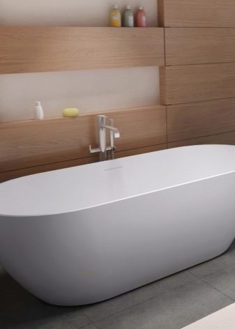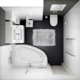 The bath should be streamlined. Corner and oval models of standard size and height are suitable. If there is a person with disabilities in the house, take the option with low sides. The sink can be desktop and built-in, in addition, you can purchase a model of "tulip". The practical model should be moderately deep.