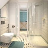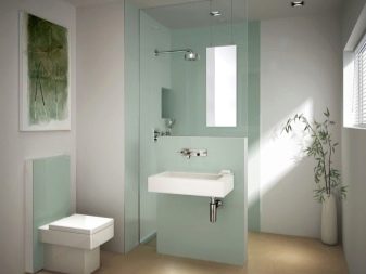 Mandatory white color, which can be used in the decoration of the ceiling, walls, plumbing material. If emotional coloring is needed, you can add to it beige, bluish, pink, mint, pistachio, green. It should be noted that the brighter the "live" color, the better. The abundance of bright colors in a limited space looks simple and boring.