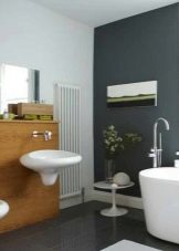 Different zones can be separated by color. But you need to choose contrasting colors correctly so as not to break the integrity of the interior solution. For example, against the background of contrasting wall decoration, plumbing can stand out.