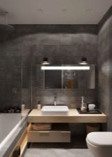 Finishing materials for arranging a small bathroom are selected taking into account practicality, durability, resistance to dampness and mold. The best solution is a tile: for its installation no crate is needed. Depending on the chosen style, you can take options with different textures and shapes.