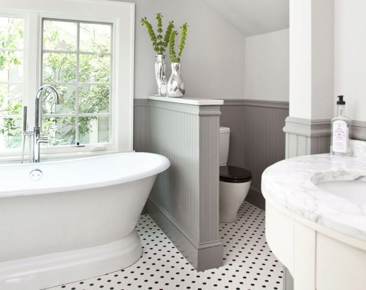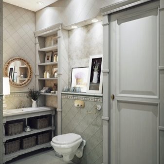 If the walls are damp due to constant flooding from the neighbors from above, you will have to mask them with plastic panels installed by castle technology. Since the crate will steal part of the space, it will be necessary to compensate for the loss with color.