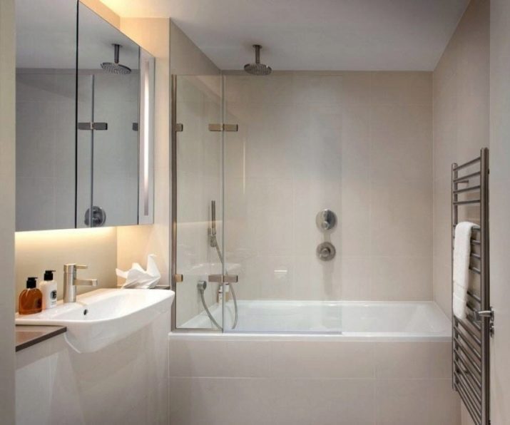 If it is decided to replace the bath with a shower cabin, pay attention to its harmonious combination with plumbing. The ideal solution would be to buy a corner model with a tone-colored frame in the sink and toilet bowl. Glass can be different (opaque, transparent, color, tinted, with a pattern, stained glass).