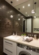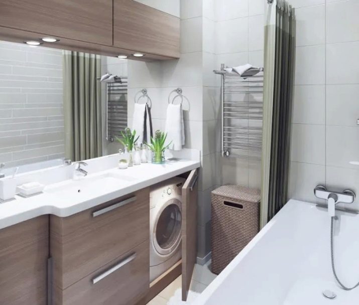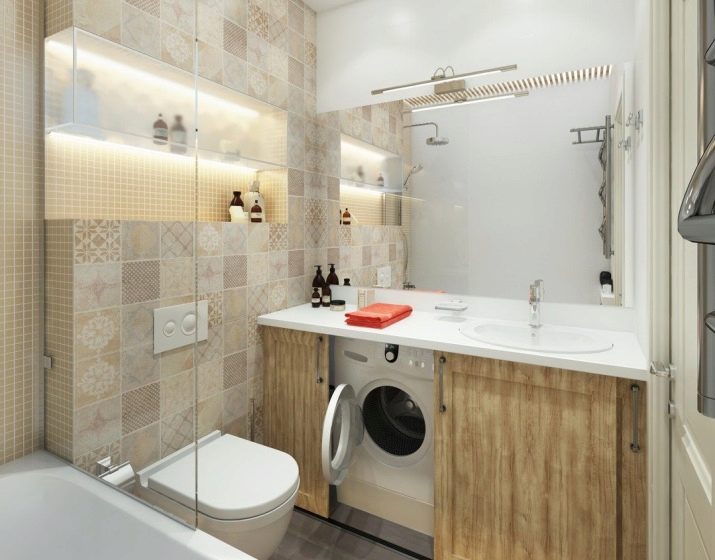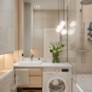 The bathroom is 3.5 square meters. It’s quite possible to supply all the required equipment and furniture, even a washing machine. The main thing is that when considering the concept, every detail should be taken into account. Many complaints about poor bathroom improvements are due to the fact that something was not taken into account or ignored initially. Most often, the washing machine is placed in a recess in the wall or under the sink.