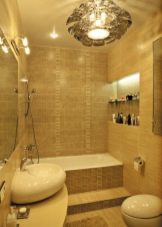 Naturally, the requirement of maximum illumination in a small bathroom. But this does not mean that you can just take and overflow everything with light. Lighting should be bright, but with a diffuse effect. Otherwise, it can turn out no better than in the "twilight" room. It is imperative to provide auxiliary highlight points that put on the level of the head.