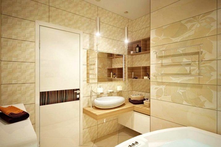 It is worth avoiding dark tones in every possible way, giving preference to light colors. The best choice is decorating a shallow bathroom with pastel colors. The beige tone looks simply elegant, and the color of ivory brings exotic motifs to the interior. If there is really not enough space for a bath, transfer the doorway.