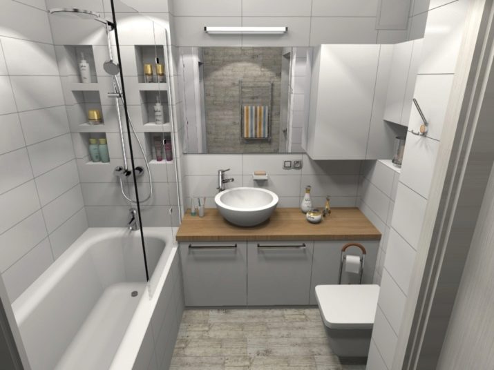 Therefore, it will be necessary to carefully consider the placement of all items. Those "liberties" that you can afford in a larger room are categorically not suitable here. The main consideration that any planner should take into account is that a person should move freely around the bathroom. Instead of a classic bath, you will have to use a shower cabin. Washing in it, as life shows, can be no worse - and less space will be taken.