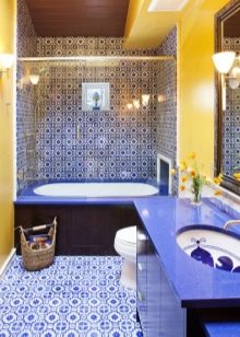 The very place in the bathroom shades of blue and blue, since these paints correspond to the elements of water and set in a calm mood during water procedures.