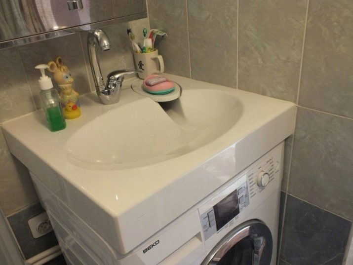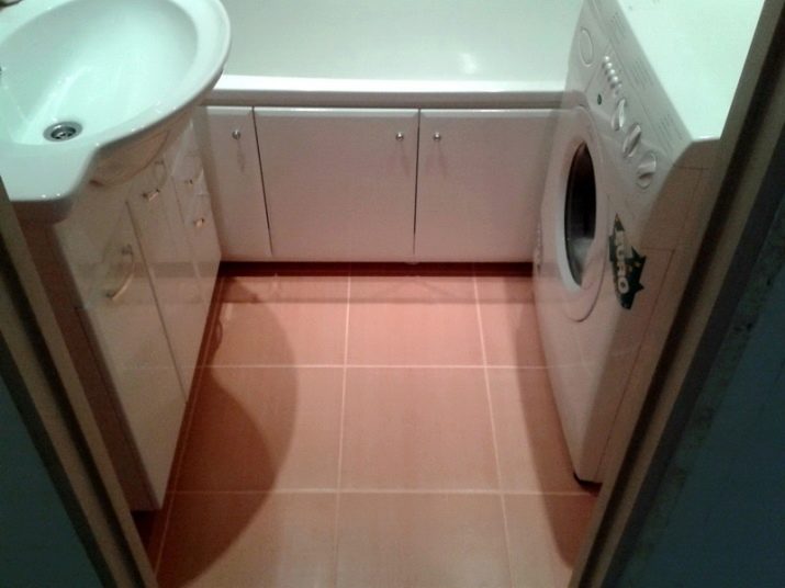 - In the mini-bathroom everything is at hand. On the one hand there is a sink, on the other - a machine, and right on the course - a container for washing and relaxing in water.