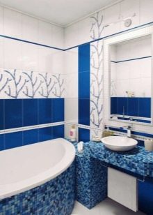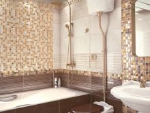 Very relevant in a small bathroom and marine theme. Beige mosaics combined with large blue tiles will create the right impression. Space, thanks to this combination, will seem more voluminous and spacious.