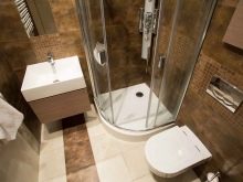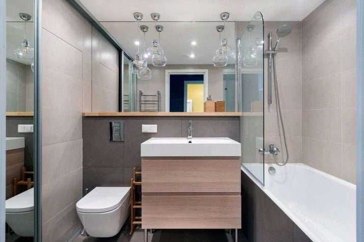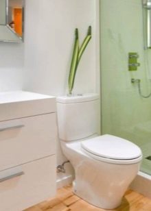 As for the toilet, for a combined small bathroom it is better to choose the corner option or the wall. You can pick up a plumbing device in the store in which there is no drain tank, and flushing is carried out by force. This will help to avoid the feeling of clutter in the room.