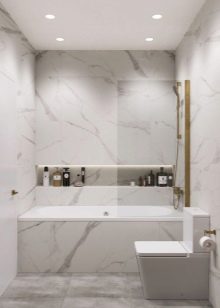 Even a small marble bathroom looks like a part of a palace. In addition, this is a very durable material that can withstand even strong blows with heavy objects - anything happens in everyday life. Therefore, if something happens, premature repair is not needed.