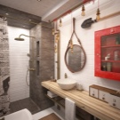 - The project of the bathroom of a private house, made in bright colors.