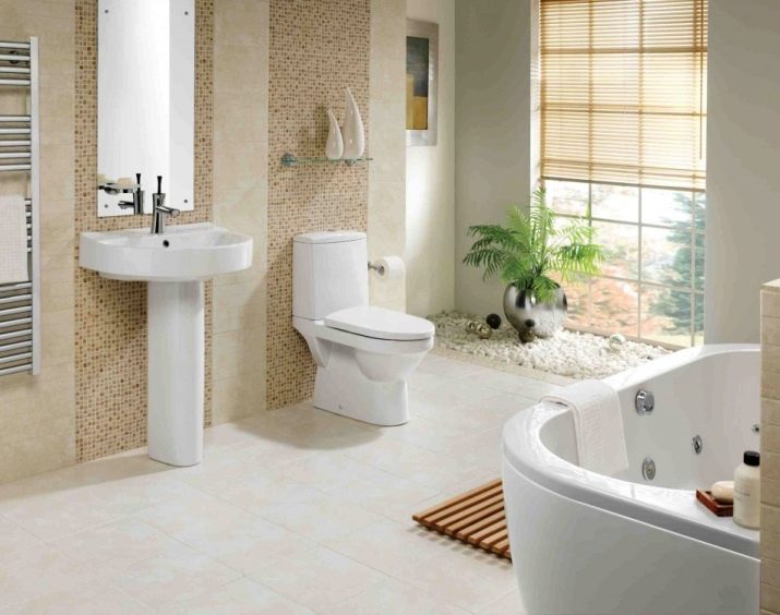 - The color scheme of the interior should be harmonious. It is good when furniture and sanitary ware stand out against the background of wall and floor cladding.