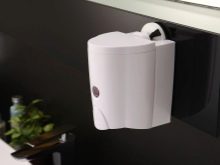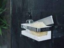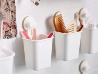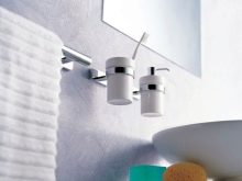 Rarely what interior of a bathroom does without wall accessories. For example, it can be compact organizers for toothpaste and brushes that are mounted on vacuum suction cups or other fasteners. Organizer sizes for hygiene items may depend on the number of items to fit. Soap dispensers are also attached to the wall when the countertop of the washbasin does not have an additional surface for table accessories.