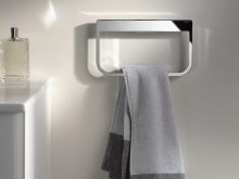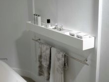 Towel racks in the form of shelves stand out from other analogues in terms of convenience and practicality. They are released not only in the classic, but also in a combined form. On sale there are 2-in-1 modifications (a shelf with a bar for drying towels).
