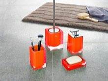 - in the style bathroom modern Accessories made of plastic with a glossy texture will look great;