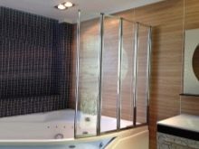 Glass varieties are ordinary and partial, while the second type of product carries more decorative load. Such screens do not protect the floor and walls of the bathroom from water spray.