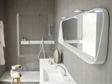 No bathroom is complete without a mirror. Its size is selected, taking into account the area of the room and the footage of the wash zone in which it is located. It may be with frame, without frame, with shelves, without them, small, standard or large. In form it happens round, oval, square, non-standard (with curly edges and unusual design).