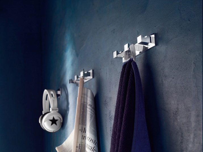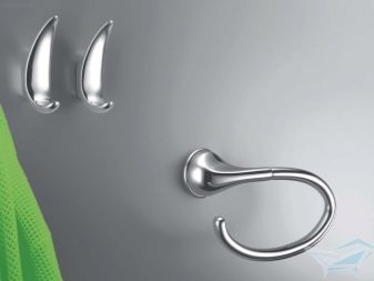 These accessories can be seen in small bathrooms. They are made of metal, wood and plastic. The best varieties are considered stainless steel options. They stand out against other analogues in attractive design and high quality. In the manufacturing process, the metal is coated with chrome, due to which the hooks do not rust and serve as a functional element of the arrangement for a long time.