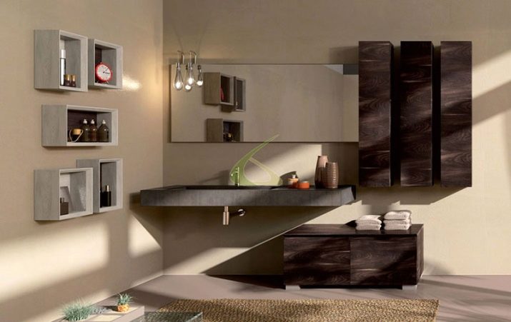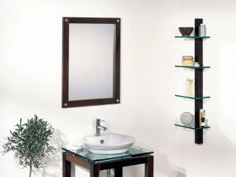 Shelves in the bathroom can be very diverse. Depending on the design, they are console, built-in, open, closed, combined. Some of them are more like compact shelving. Others are hidden behind the mirror and, if necessary, extend to the sides.
