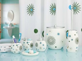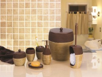 Ceramic accessories are quite expensive, but status. Decorated with stucco, decal or voluminous decor, they bring a special touch to the interior of the bathroom. The disadvantages of ceramics are weight and fragility. Such products are taken for spacious bathrooms.