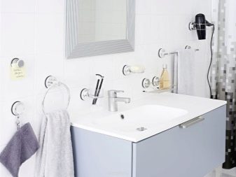 The placement of accessories in the bathroom depends on their quantity and type. If the room is spacious, there may be more, in a small space you have to be limited to a minimum. To save useful space, small household items can be placed on shelves and wall holders. When the room is very crowded, individual items are mounted on the front door.
