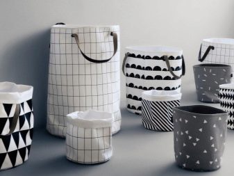 Laundry baskets are straight and angular, cylindrical and rectangular, mesh, with and without handles. The best varieties of rulers are models with holes. So ventilation is provided inside the container, and therefore, the laundry inside the container does not damp.